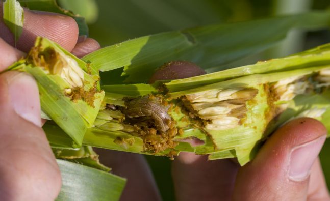 The worm likes maize, sorghum, soybeans, groundnuts and potatoes.